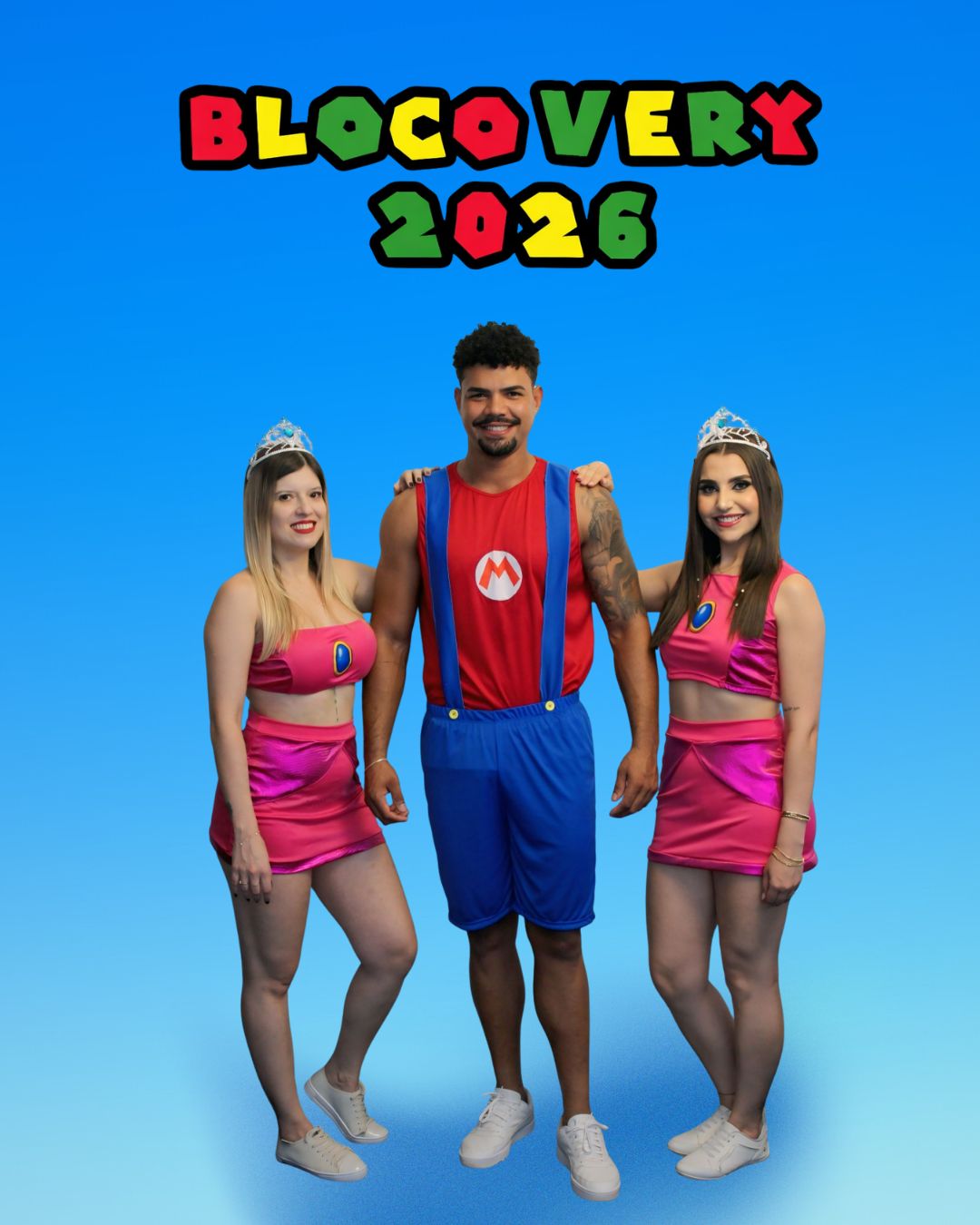 Nosso Bloco Very, seguindo uma temática de jogos, escolheu o tema Super Mario por ser um jogo e um universo que marcou gerações, atravessando o tempo e despertando nostalgia, diversão e emoção em pessoas de todas as idades. Sempre com cores vivas, personagens icônicos e muita criatividade, as fantasias e o design do bloco como um todo nos fizeram idealizar e sonhar com toda a alegria que será desfilar no Carnartur.